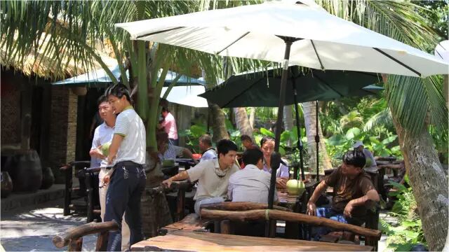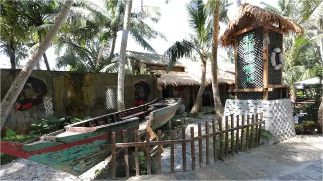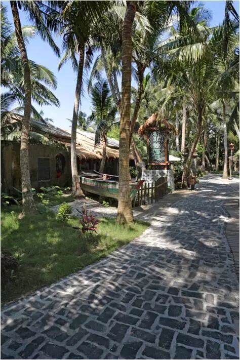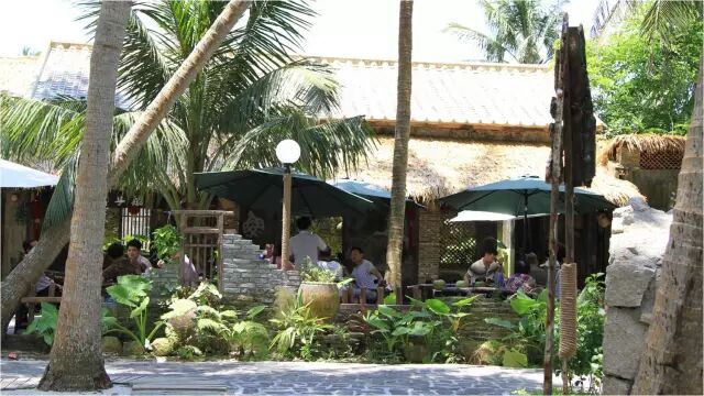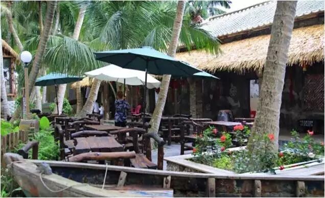 翠绿的椰子树下,青青的芳草径边,码头灯、旧木船、造型独特的渔具和瓷坛,令人有着无限遐想。“约上三两好友,来到这里点上一杯咖啡,尽情享受夏日里椰风拂面的独特魅力。”