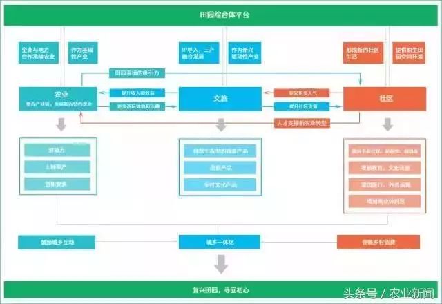 在工业化和城市化的初始阶段,农业和乡村与国家和社会的落后往往紧密联系在一起,城市化和工业化的过程就是乡村年轻人大量流出的过程和老龄化的过程、放弃耕作的过程和农业衰退的过程,以及乡村社会功能退化的过程。田园综合体是乡与城的结合、农与工的结合、传统与现代的结合、生产与生活的结合,以乡村复兴和再造为目标,通过吸引各种资源与凝聚人心,给那些日渐萧条的乡村注入新的活力,重新激活价值、信仰、灵感和认同的归属。