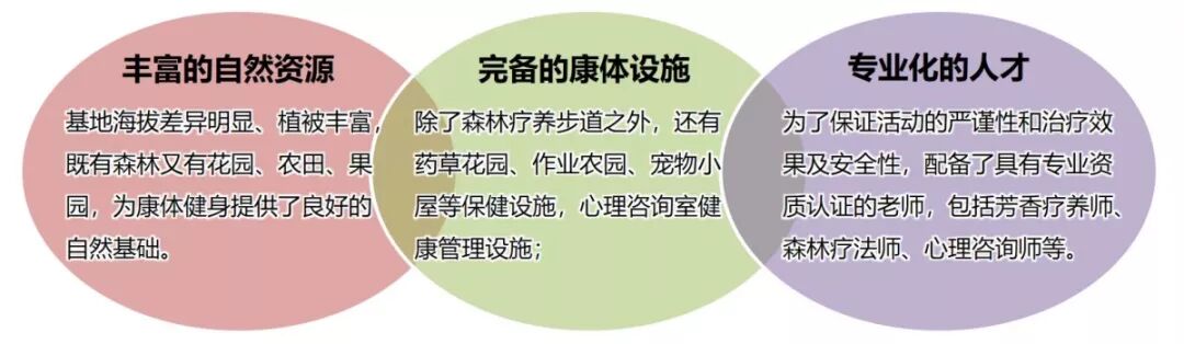 配合专业的健康管理内容:例如,芳香疗法,有资质的芳香疗养师会根据体验者体质,调配精油,并给出健康管理意见; 自律神经平衡测定,利用专业的评估仪器,测定自律神经平衡情况,并当场打印评估报告;一对一心理咨询,如果压力过大、轻度神经质、或是有生活习惯病,基地的心理咨询师会通过冥想治疗等方式,给出专业的解决方案等。基地发挥资源的独特优势,通过体系化的运动健康疗养服务,每年吸引大量的人群前去休养、体验。