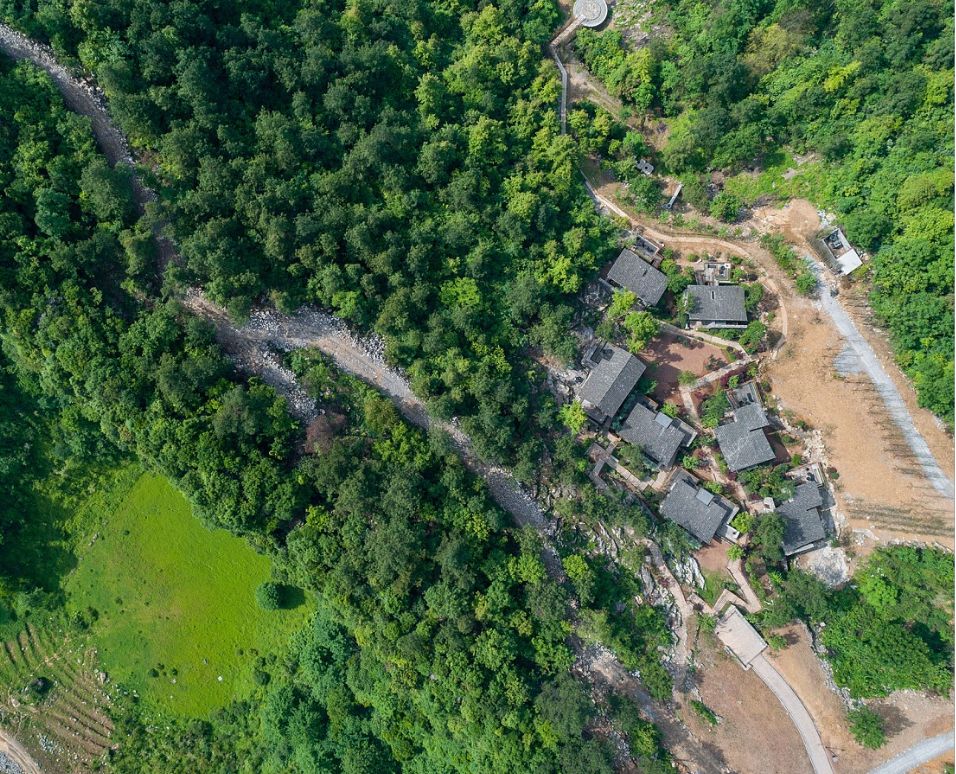 除了有名的莫干山裸心堡项目外,重庆武隆的“归原小镇”项目也是一个典型:项目总占地面积1163亩,实际建筑面积6.2万方,容积率0.88,建筑密度40%。项目主要包括36栋民宿建筑,其中25栋为新建民宿,11栋由原空置农房改造而来。农房改造用于山里工作室、接待中心、茶室、民宿、青年旅社和农事体验工作坊等。